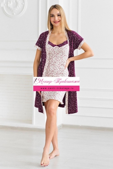 Комплект из пеньюара и сорочки из кулирки Эльза бордовый №А-02111