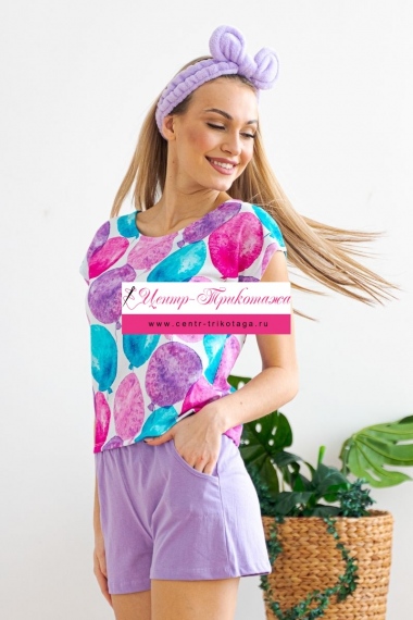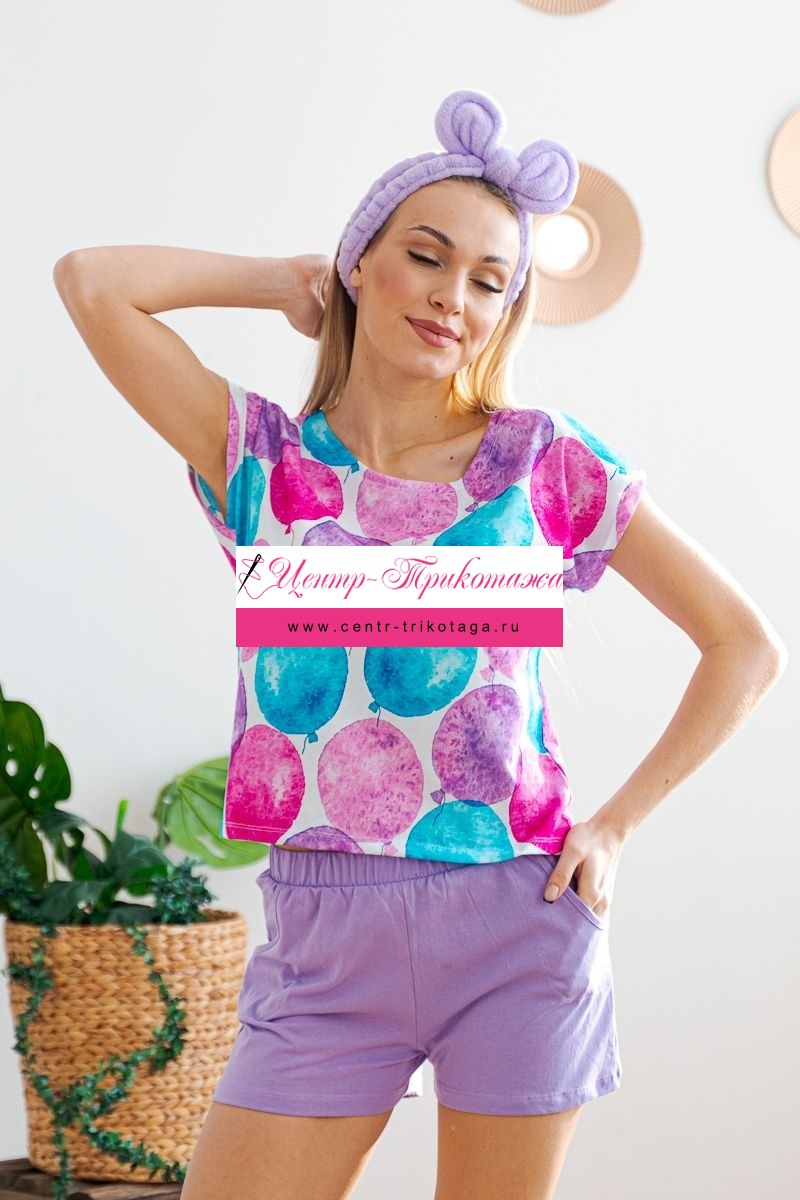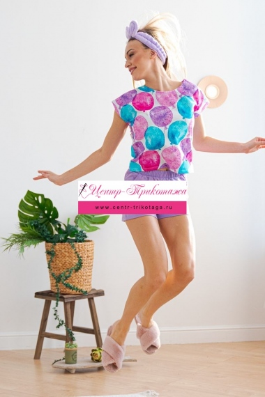 Комплект женский из футболки со спущенным плечом и шорт из кулирки с лайкрой Fairy-tale шары №А-D-0202