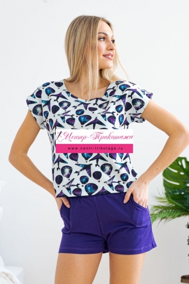 Комплект женский из футболки со спущенным плечом и шорт из кулирки с лайкрой Fairy-tale аэро №А-D-0201