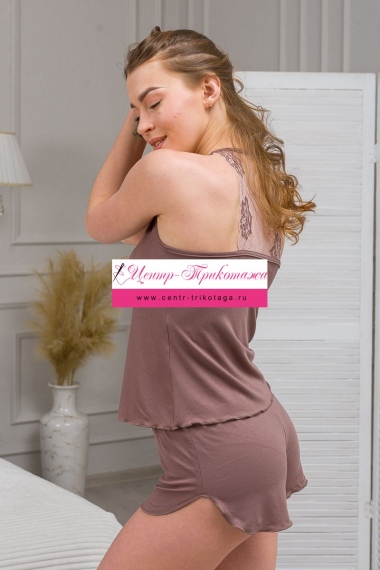 Комплект женский из топа и шорт из вискозы Лили капучино №А-20312