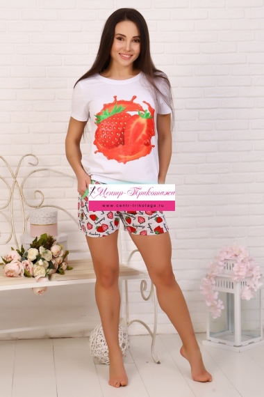 Костюм футболка + шорты. На полочке изделия яркий принт.
