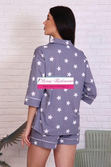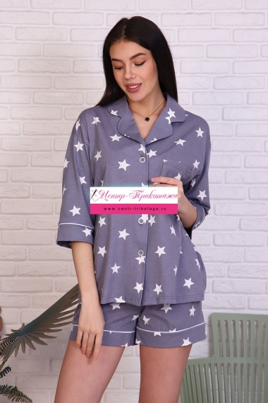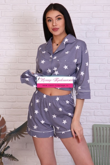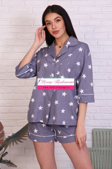 Костюм из 100% хлопка, состоит из рубашки и шорт. Рубашка на пуговицах с английским воротником. Рукава свободные 3/4 на манжете, шорты на поясе с резинкой, низ на манжетах