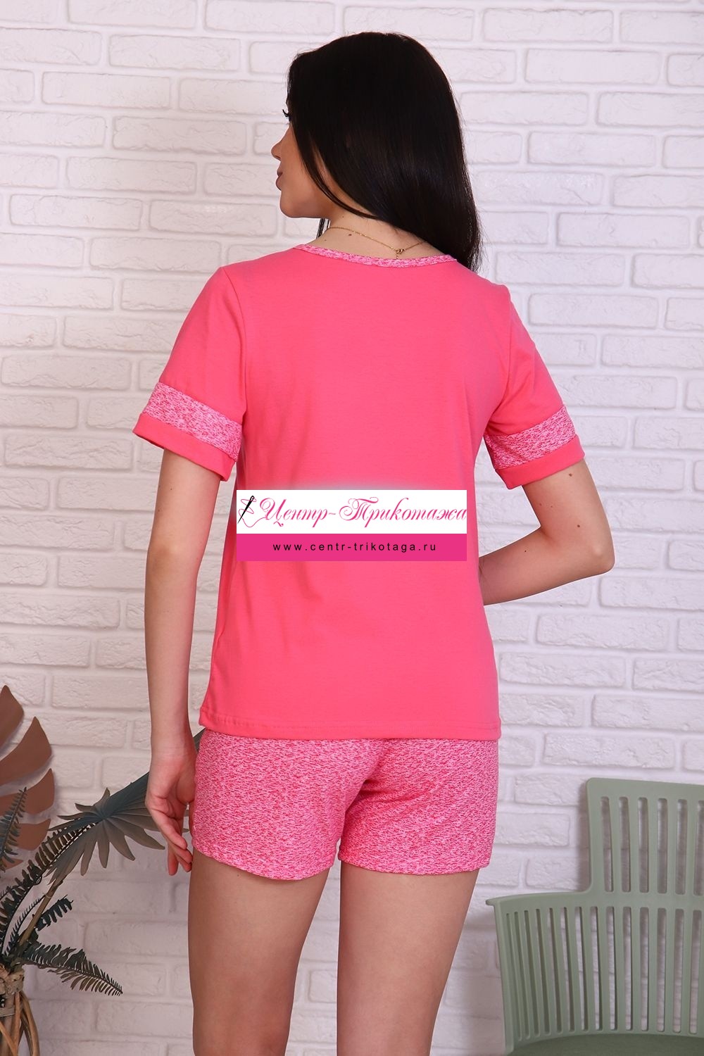 Молодежный яркий костюм из кулирки футболка + шорты. Футболка из однотонной ткани с печатью, рукава короткие, горловина V-образная, шорты из набивной ткани, с карманами