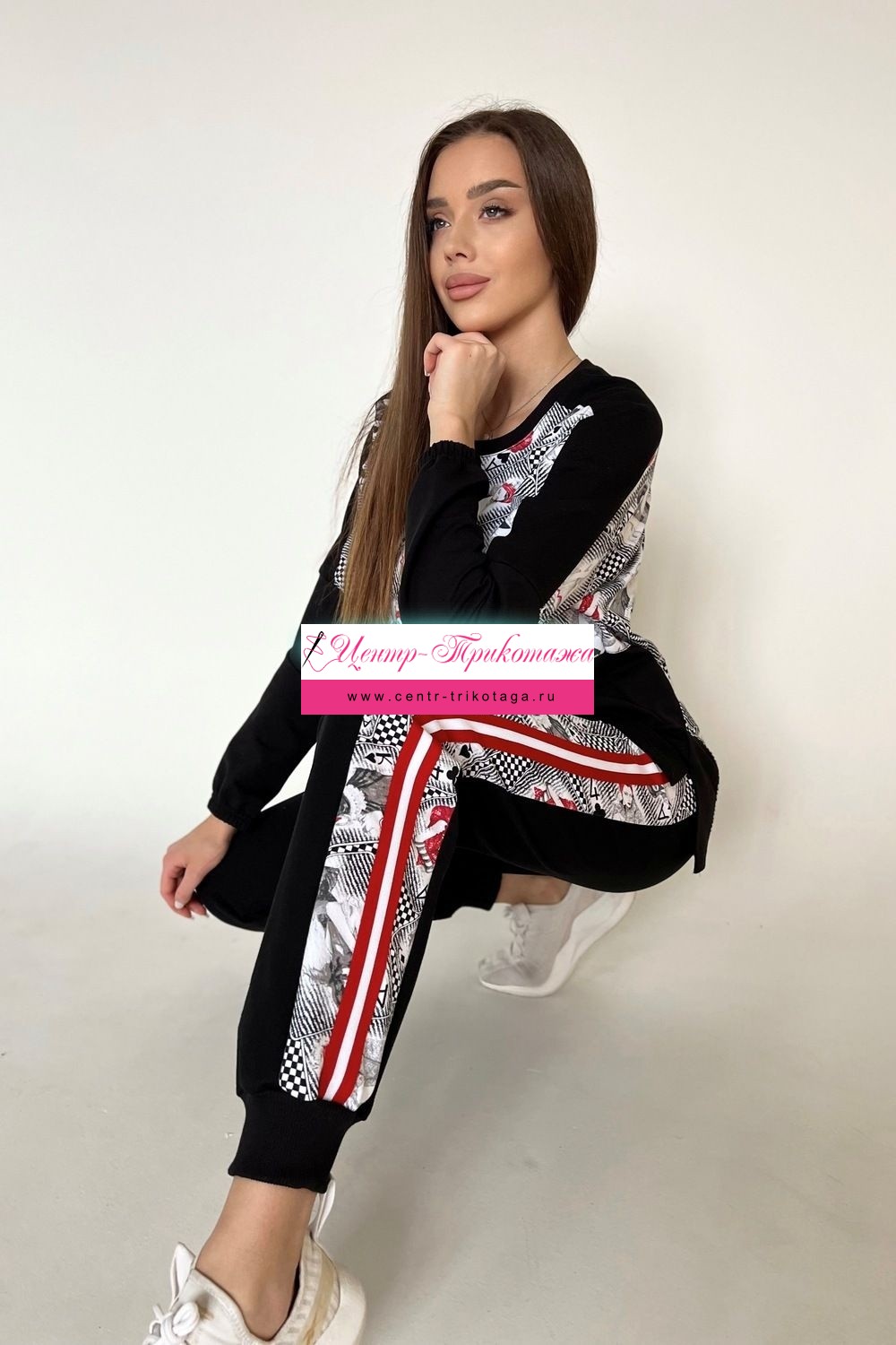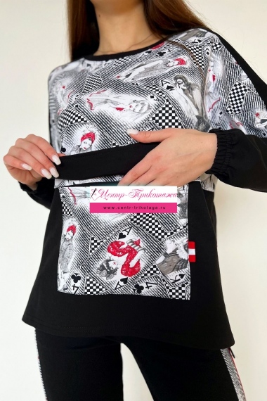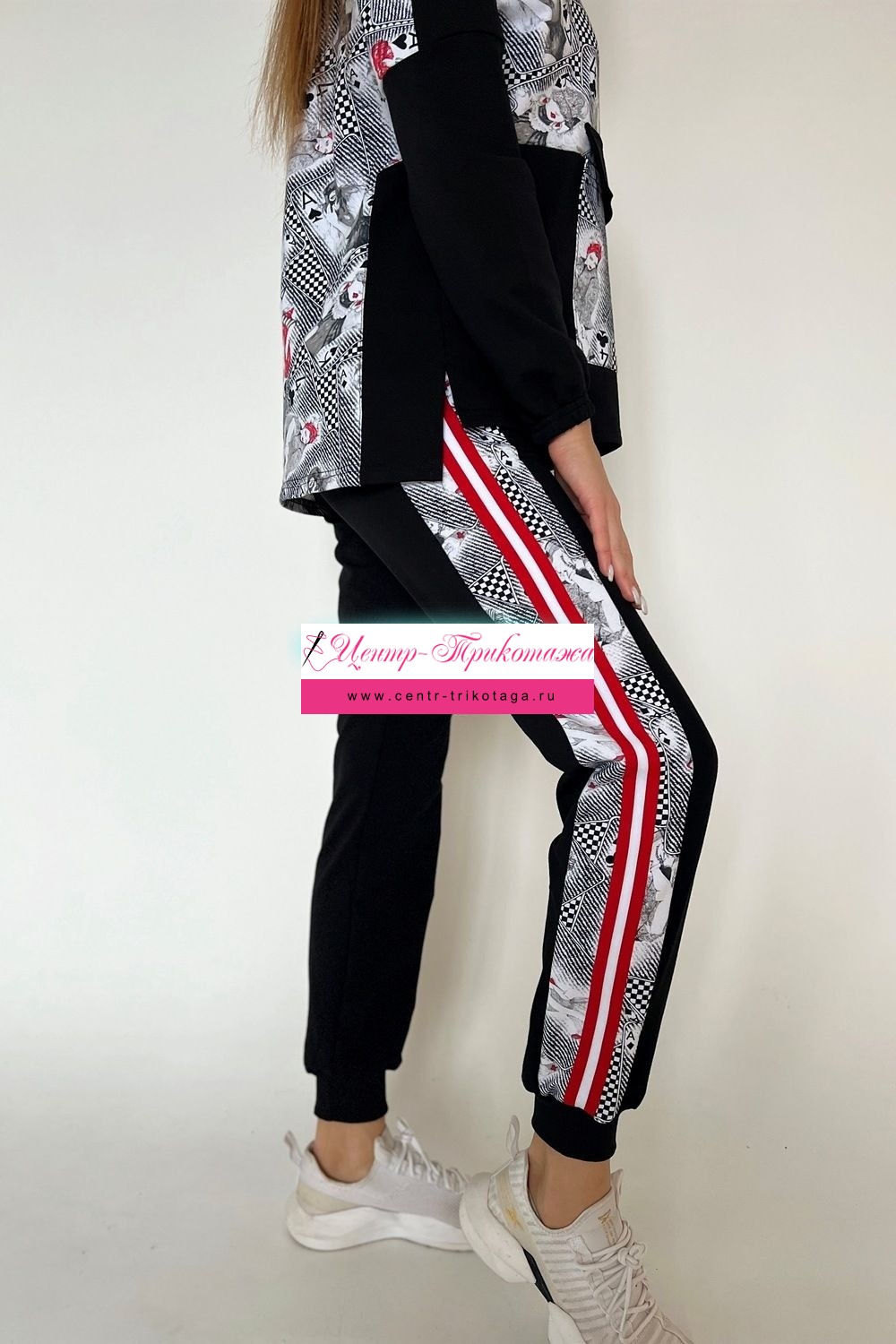 Костюм молодежный. Толстовка с карманом, брюки внизу на манжетах.