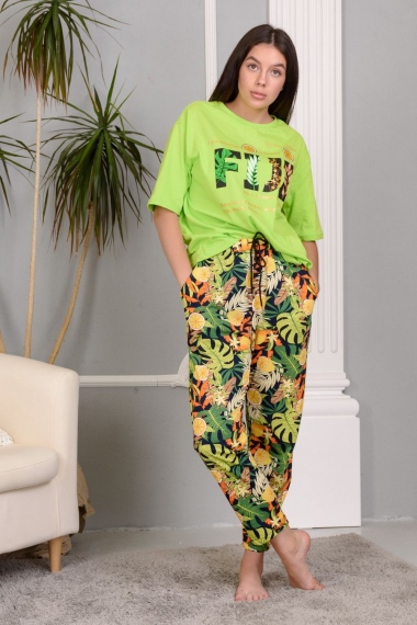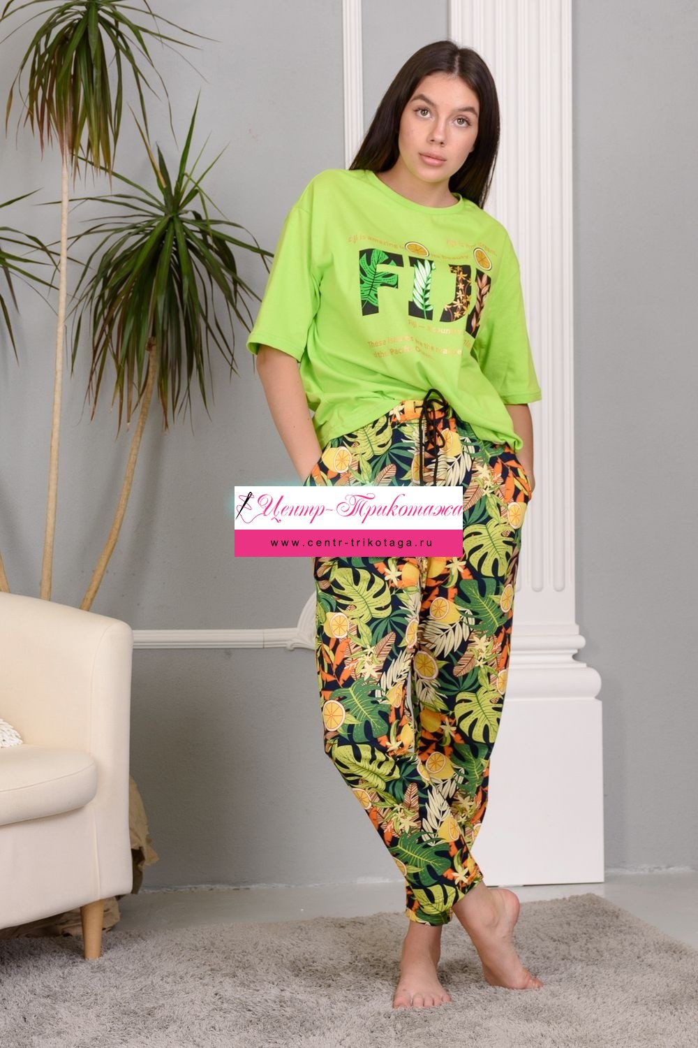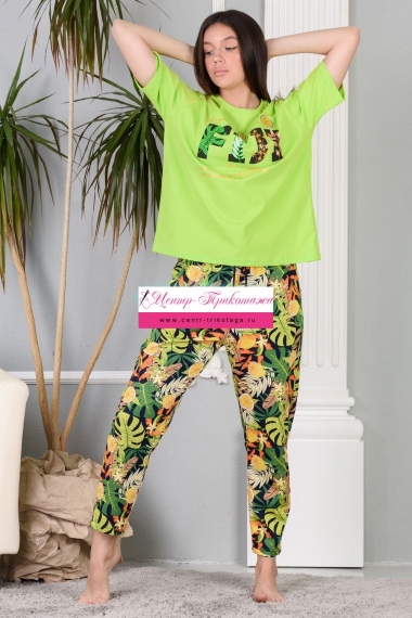Костюм в стиле оверсайз - лёгкая небрежность . Этот стиль уже не сдаёт позиции несколько сезонов. В этом костюме привлекает всё: свобода кроя, современный принт, непринуждённость и комфорт, который так важен в повседневной жизни. Спущенная линия плеча. Этот костюм подчёркивает женственность, при этом позволяет скрыть некоторые недостатки фигуры и подчеркнуть достоинства. Верх брюк обработан удобной широкой резинкой, которая не скручивается после стирки, а шнурком можно регулировать размер талии.
