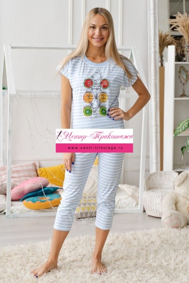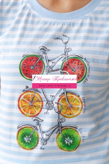 Костюм женский из футболки со спущенным плечом и бридж из кулирки Fruits&bikes голубой №А-20155
