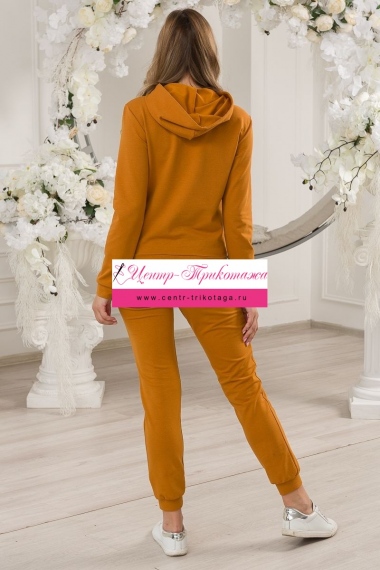 Костюм женский из худи и брюк из футера Кроссфит горчичный №А-20275