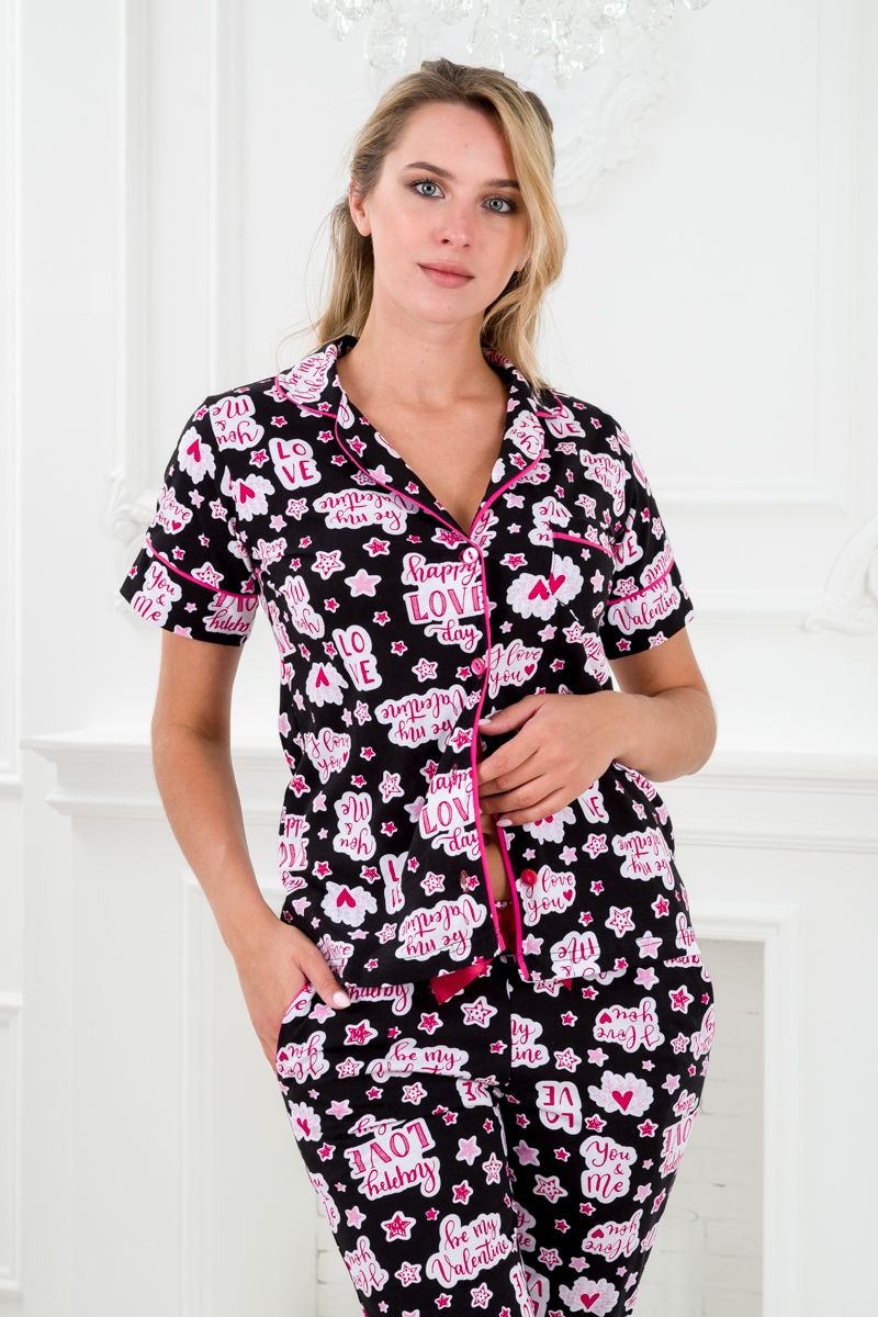 Костюм женский из кулирки жакет и брюки Рейчел черный,белый №А-20223