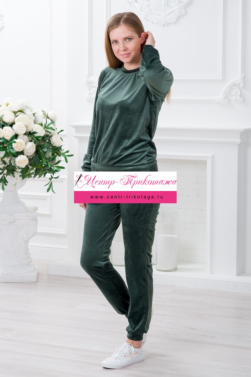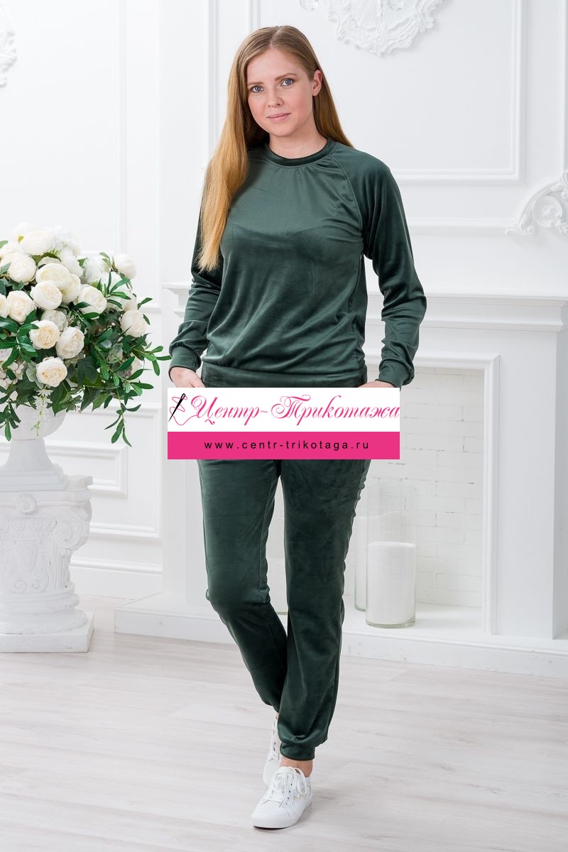 Костюм женский из свитшота и брюк из стрейч велюра Люкс изумрудный №А-20998