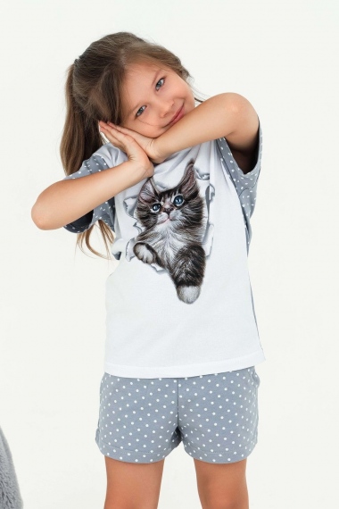 Домашний костюмчик с забавными рыжими котятами. Футболка свободного кроя, спущенная пройма. Шорты на широкой резинке с боковыми карманами.