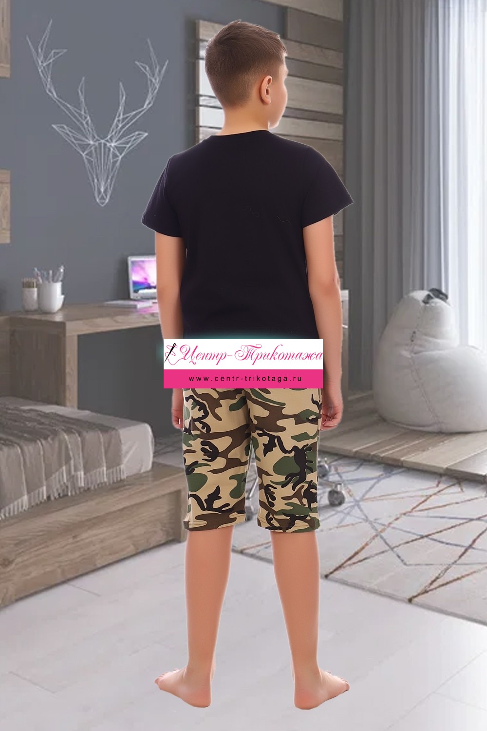 Костюм для мальчика состоящий из футболки и удлинённых шорт. Горловина обработана эластичной рибаной. Костюм предназначен для повседневного использования, так же может быть использован в качестве оригинального подарка. Футболка украшена современным принтом - морпехи.