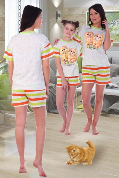 Домашний костюмчик с весёлыми рыжими котятами. Футболка свободного кроя, шорты на широкой резинке.