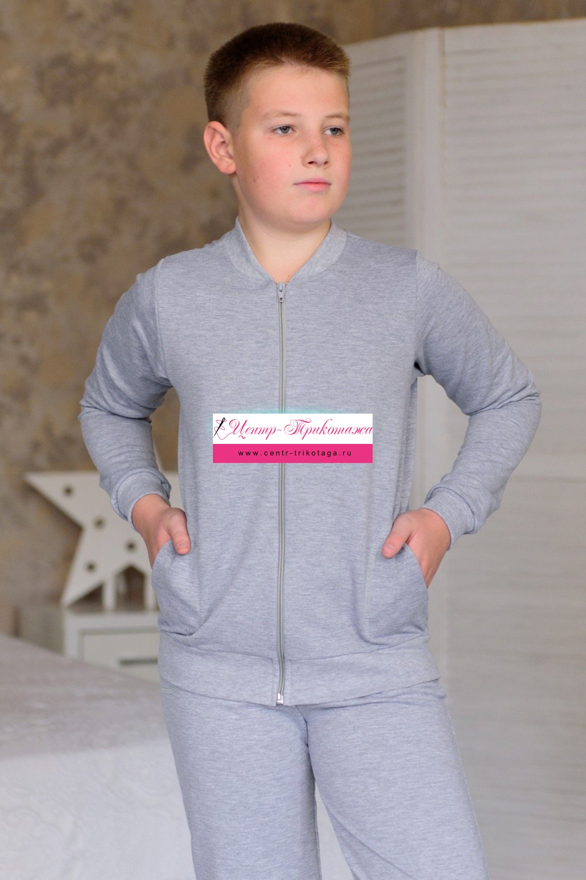 Костюм спортивный детский из футера серый меланж №А-06545