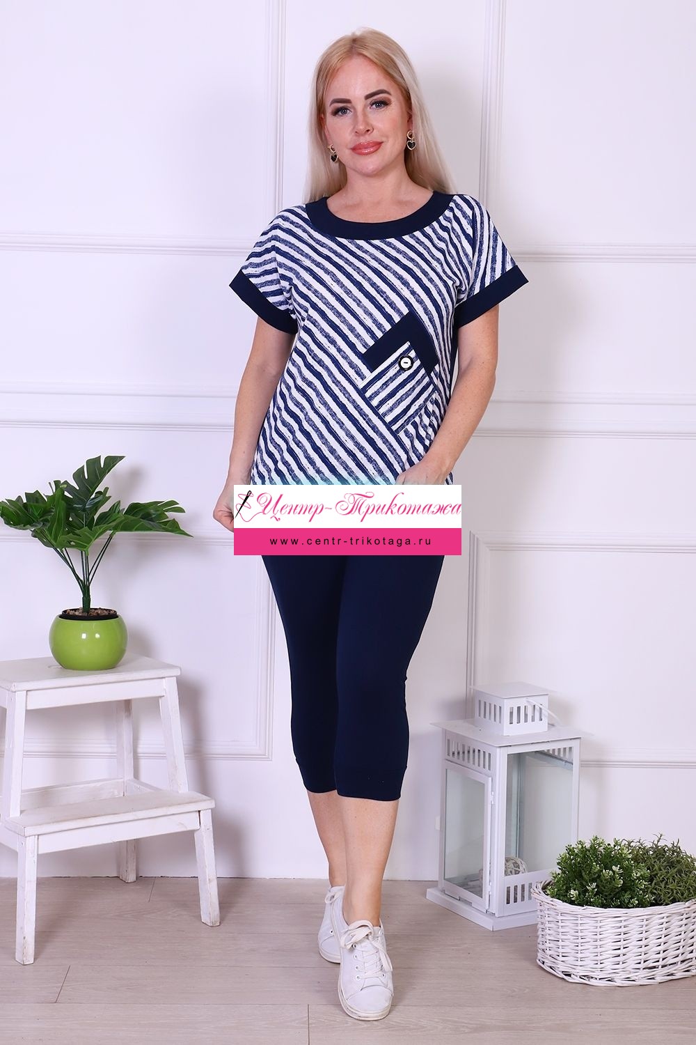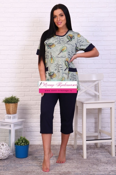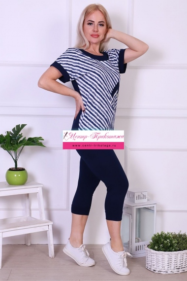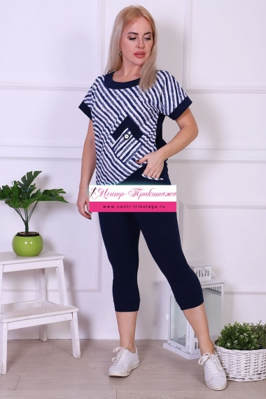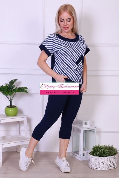 Футболка свободного покроя с декоративной отделкой, бриджи на манжетах с карманами