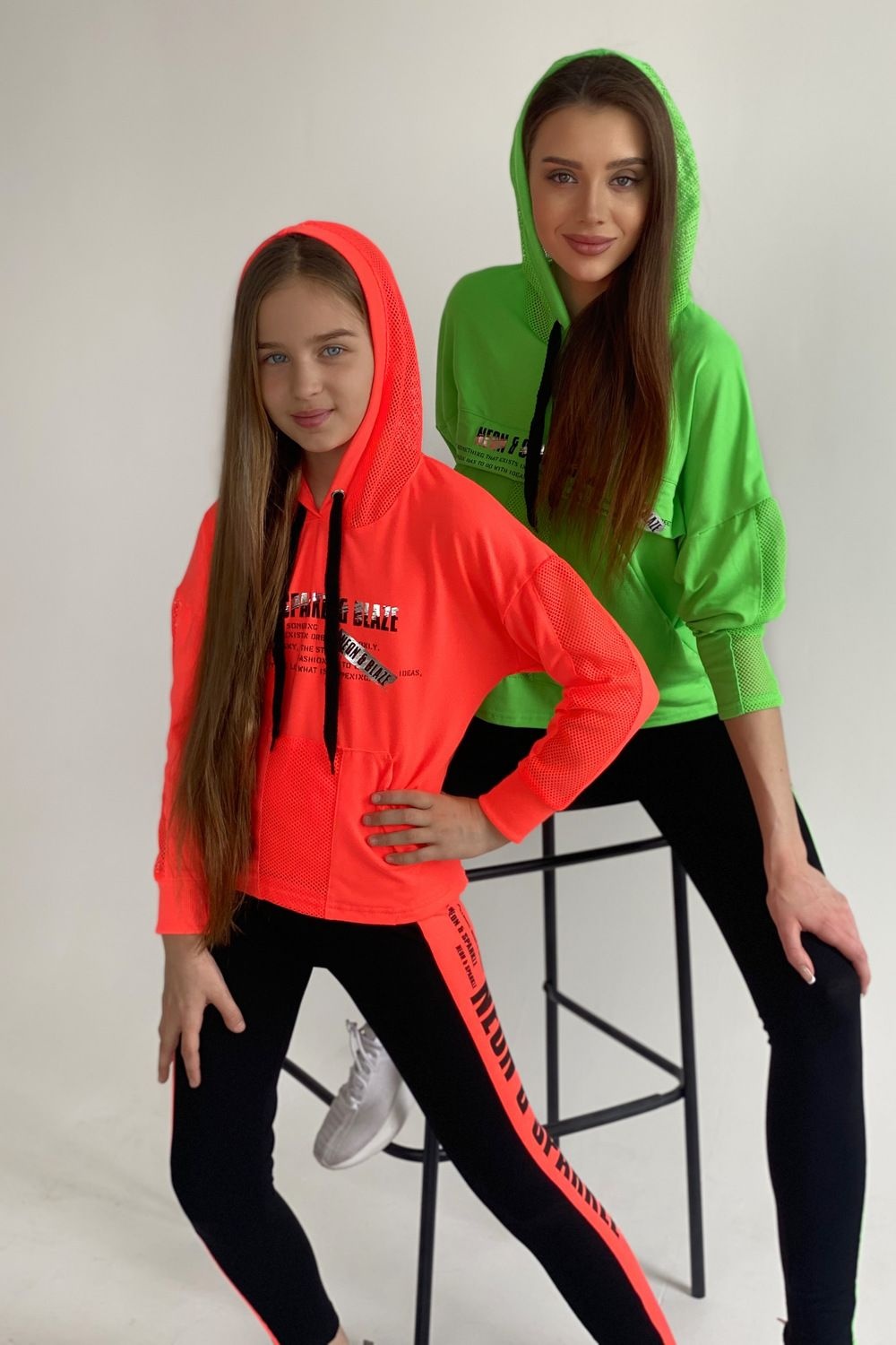 Лосины облегающие, длинные, сверху на резинке. Вдоль боковых швов расположен лампас из отделочного полотна.