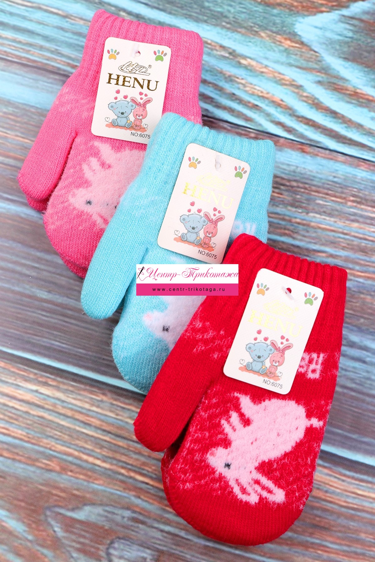 Варежки детские "HENU" (двойные, начёс, S, M) №ГП6075