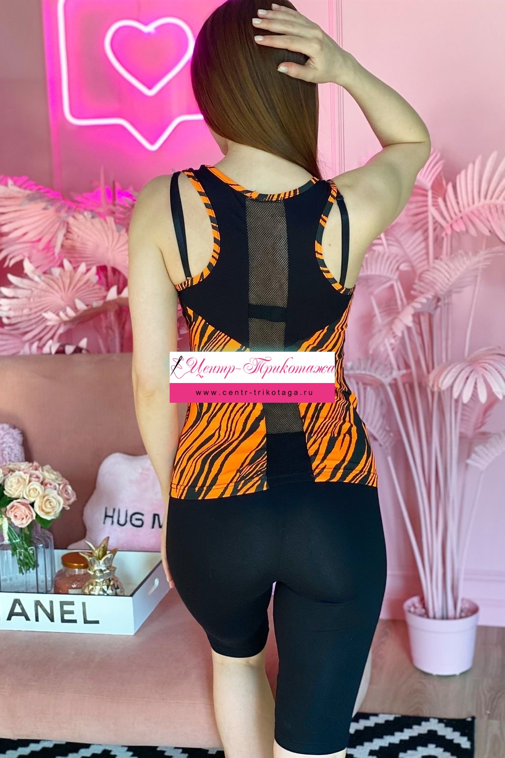 Майка-борцовка прилегающего силуэта, средней длины, с округлой горловиной. Вдоль спинки расположена вставка из сетки. Горловина и проймы майки обработаны бейкой из основного полотна.