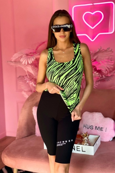Майка-борцовка прилегающего силуэта, средней длины, с округлой горловиной. Вдоль спинки расположена вставка из сетки. Горловина и проймы майки обработаны бейкой из основного полотна.