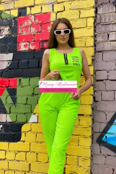 Майка из кашкорсе, прилегающего силуэта, средней длины, с округлой горловиной. В верхней части полочки обработана молния. Горловина и проймы майки обработаны бейкой из основного полотна.