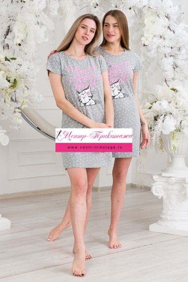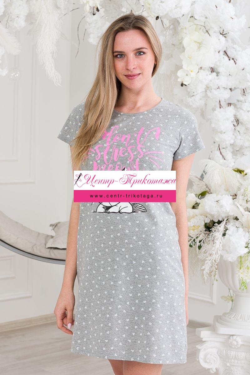 Ночная сорочка из кулирки Сиеста сердца на сером, Don t stress №А-05333