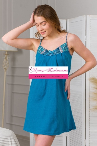 Ночная сорочка на бретелях из кулирки Лисандра бирюза №А-05113
