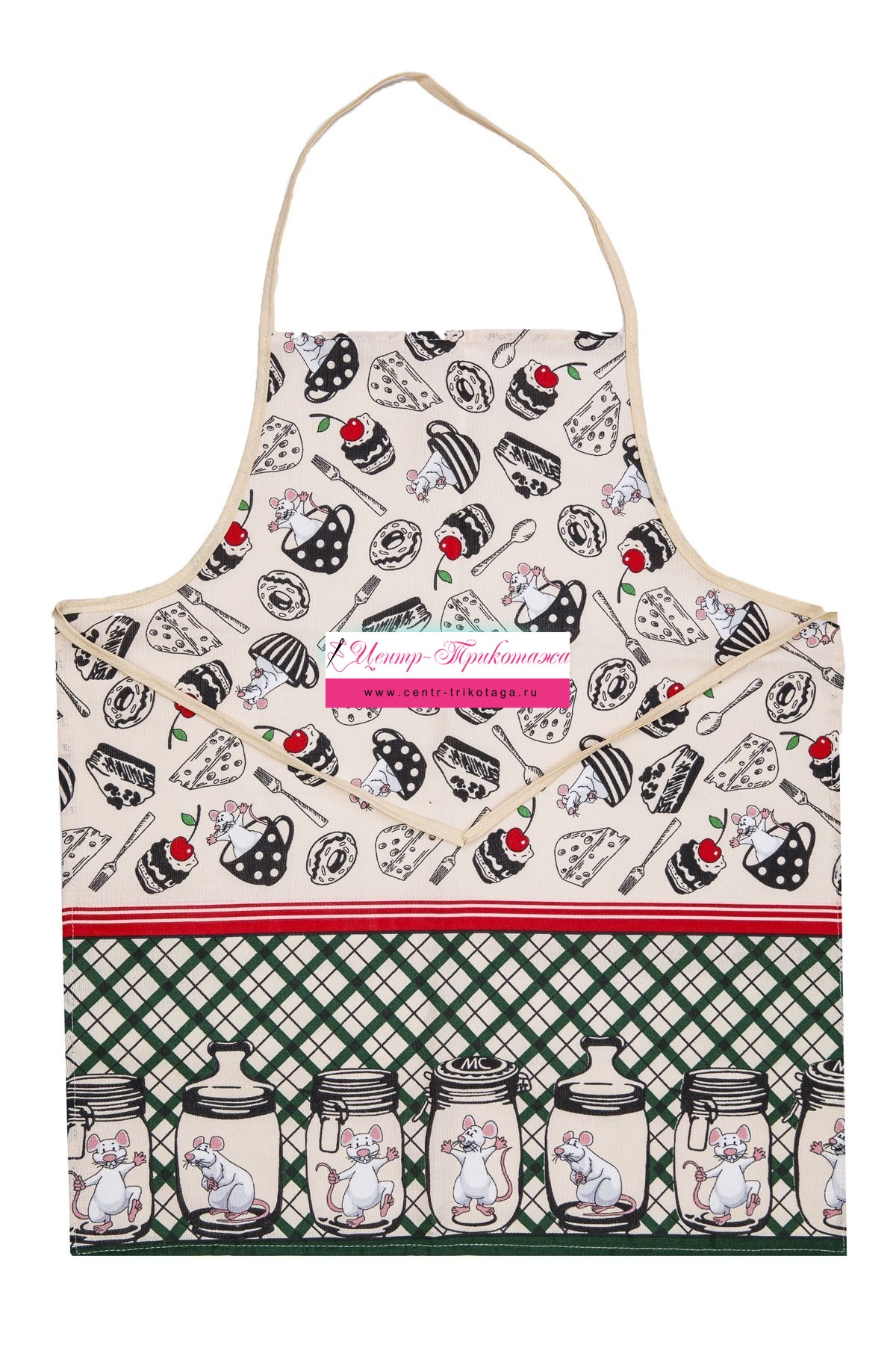 Фартук кухонный "Мыши в банках" (зеленый) №ПНН-9265-1