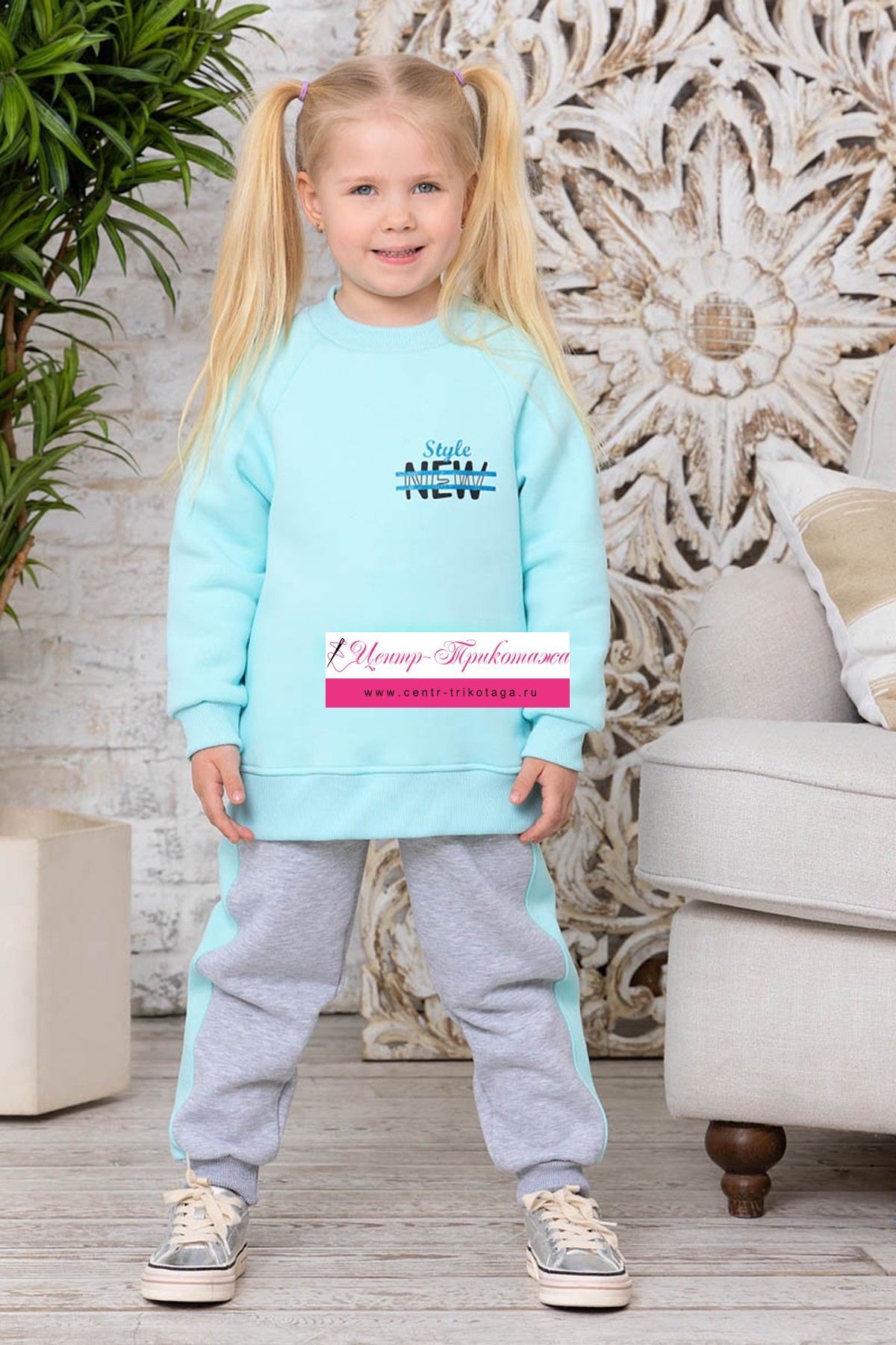 Костюм футер "Сапфир" (ментоловый, серый меланж) №ИВБ-30201