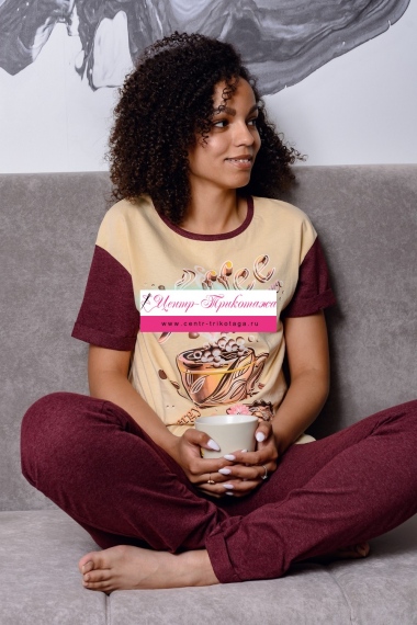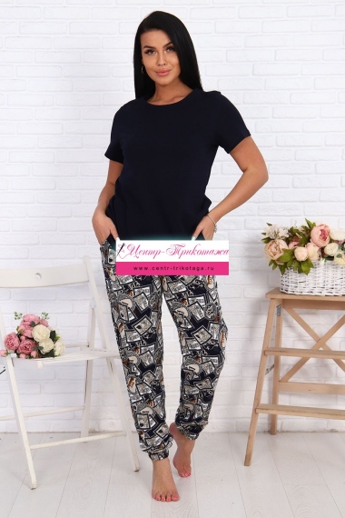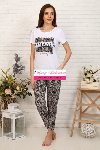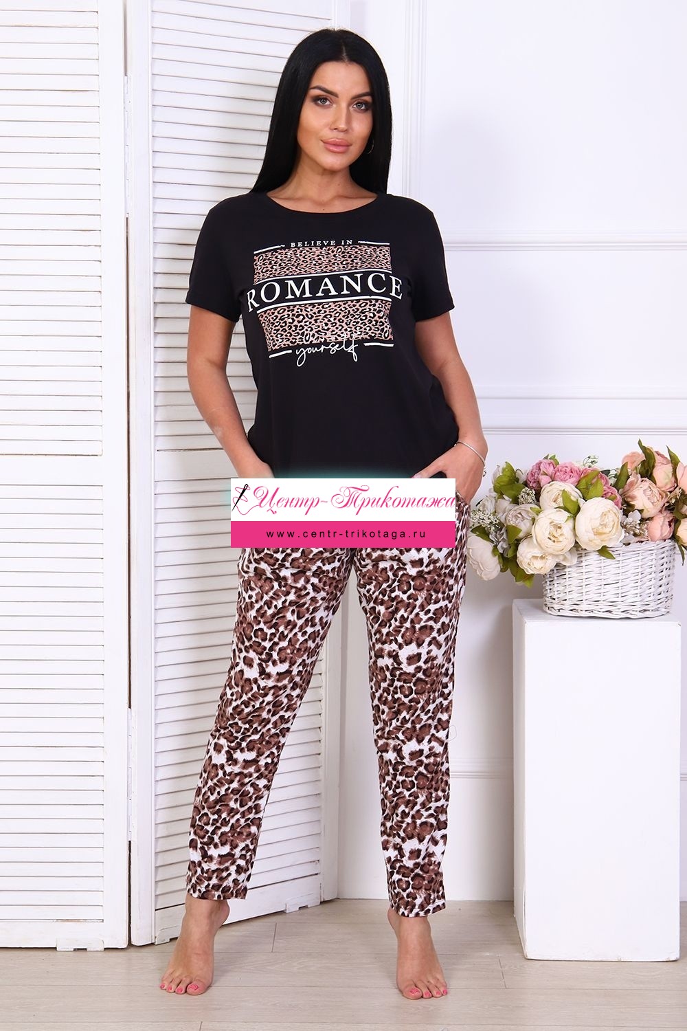 Приятная к телу женская пижама из 100% хлопка. Лучший вариант для домашнего комфорта - натуральные ткани, яркий дизайн и в то же время универсальный стиль позволяет использовать этот костюм как домашний так, и прогулок в теплую приятную погоду. В комплект входят два изделия, сшитые из кулирки.