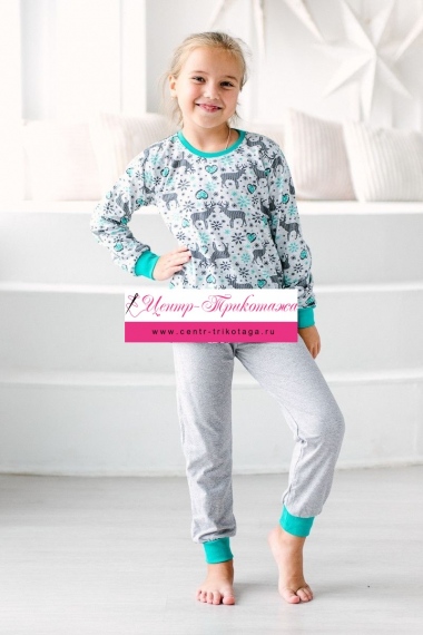 Пижама детская из джемпера и брюк из кулирки Олененок ментол №А-06330