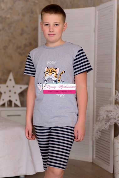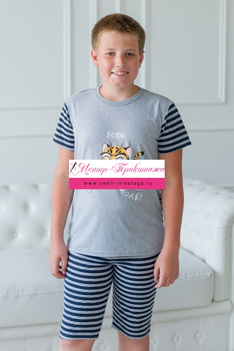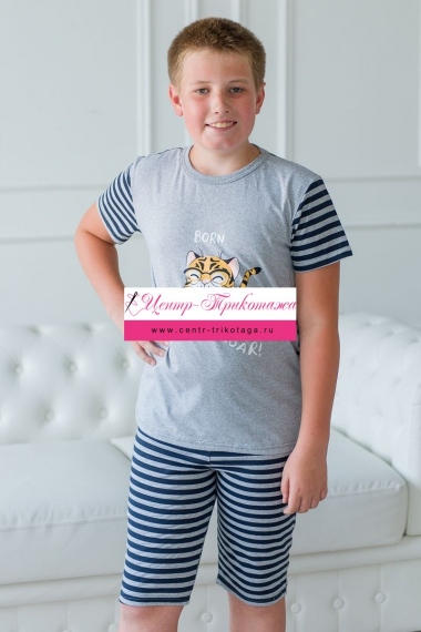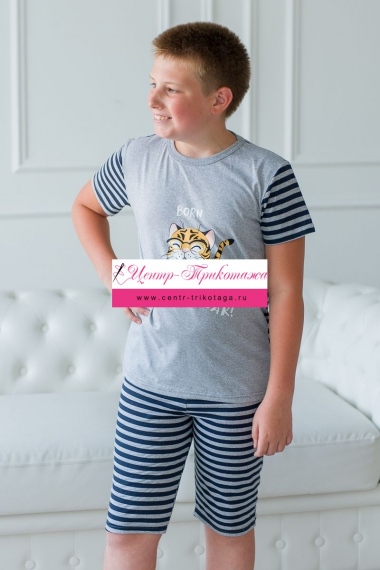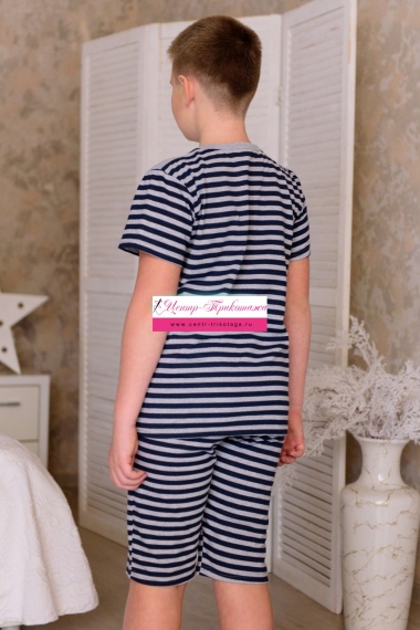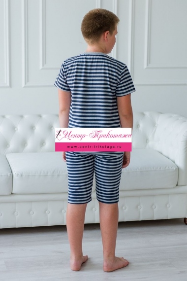 Пижама детская из футболки и бридж из кулирки Радость синий №А-06506