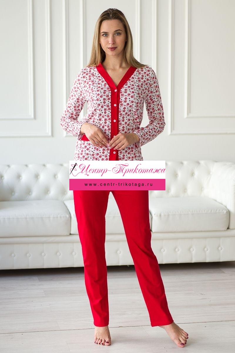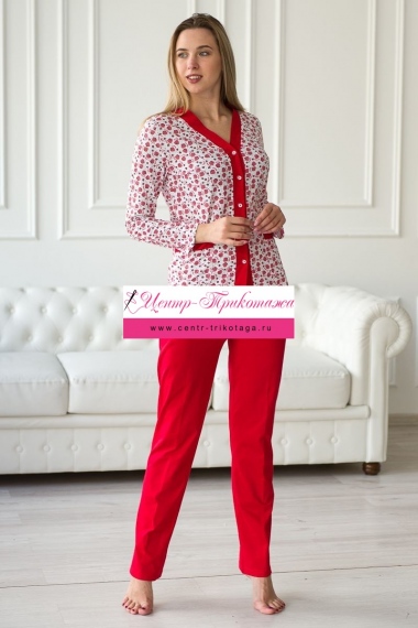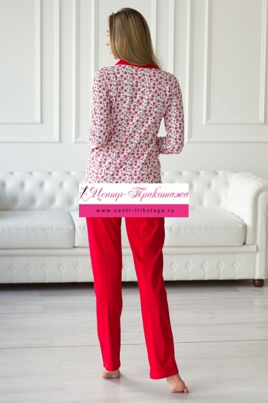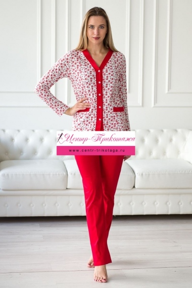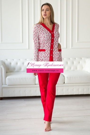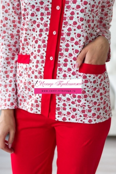 Пижама женская из жакета и брюк из кулирки Эльза клубничка, красный №А-20270