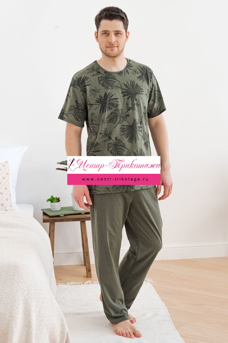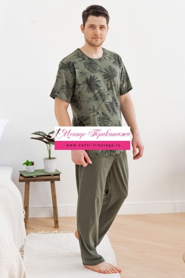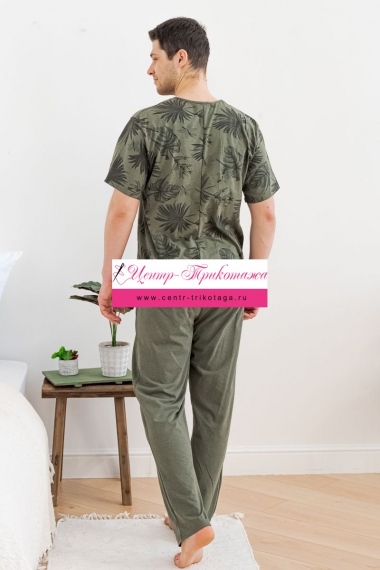 Пижама мужская из кулирки Сэм хаки №А-1436