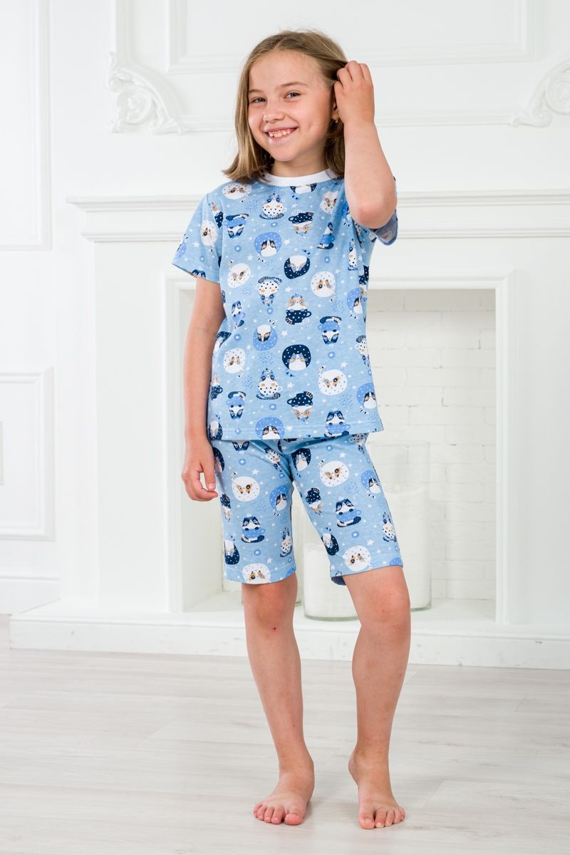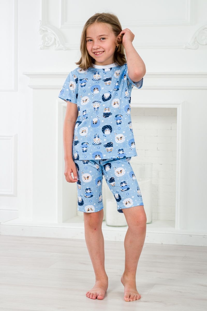 Пижама подростковая из футболки и бридж из кулирки Кошки №А-06628/1