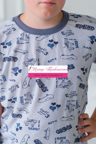 Пижама подростковая из футболки и бридж из кулирки Саша серый №А-06596/1