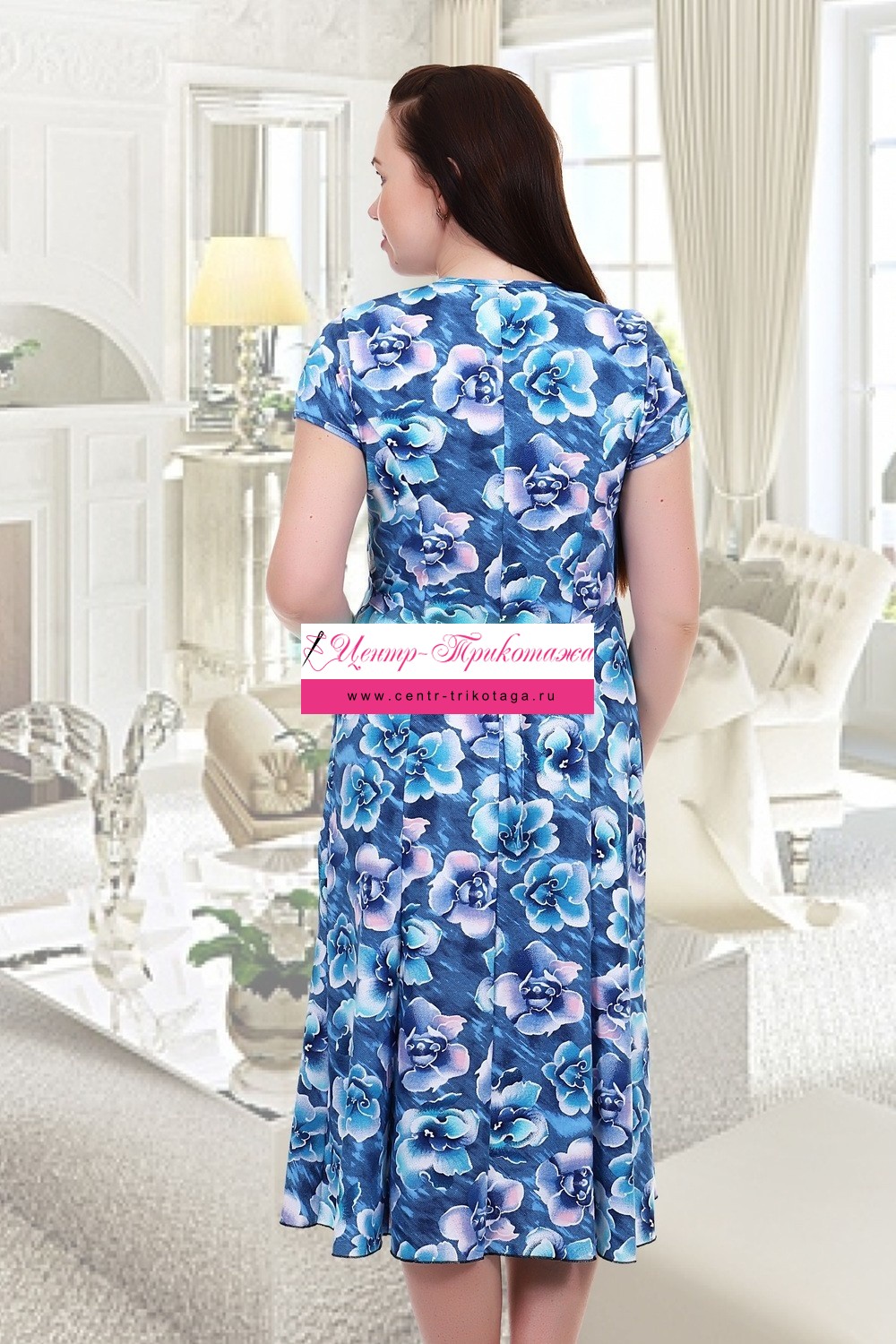 Легкое летнее платье из кулирки. Три варианта дизайна — пионы, орхидеи и сакура, рукава короткие, общая длина платья чуть ниже коленей. Размеры от 48 до 66.