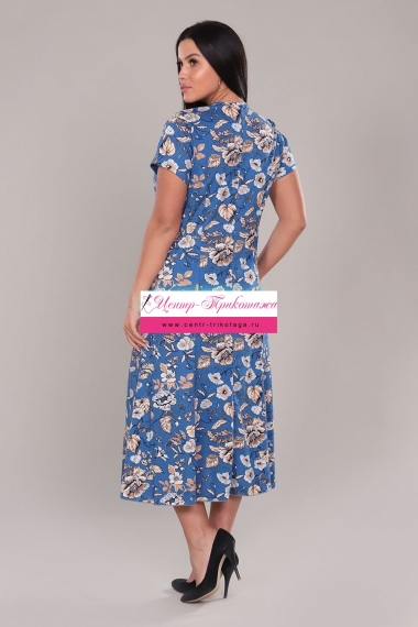 Платье женское очень красивой и оригинальной расцветки выполнено из ткани хлопок. Платье удлиненное, приталенное, с расклешением к низу. Вырез платья V-образный за счет запаха на полочке, что придает изделию элегантность и комфорт. Модель подойдет для прогулок, отдыха и дома.