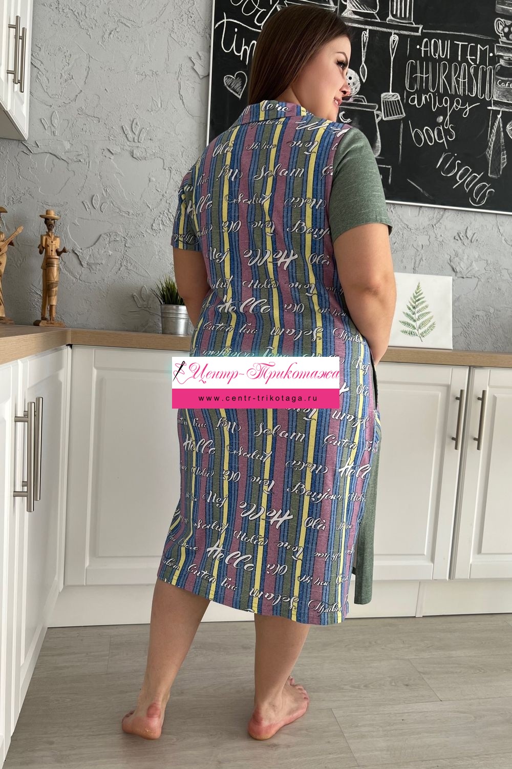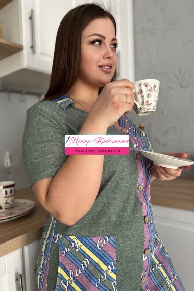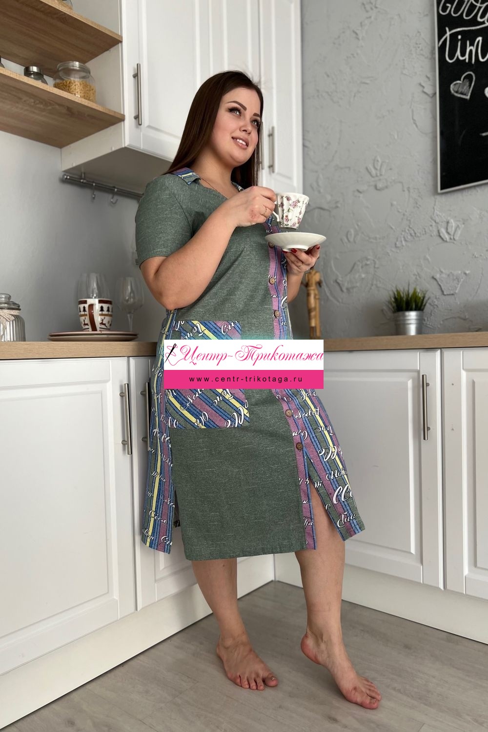 Платье женское полуприлегающего силуэта с отложным воротником застежкой на пуговицы сверху донизу. По груди кокетки, один карман в боковом шве, по низу разрезы в боковых швах.