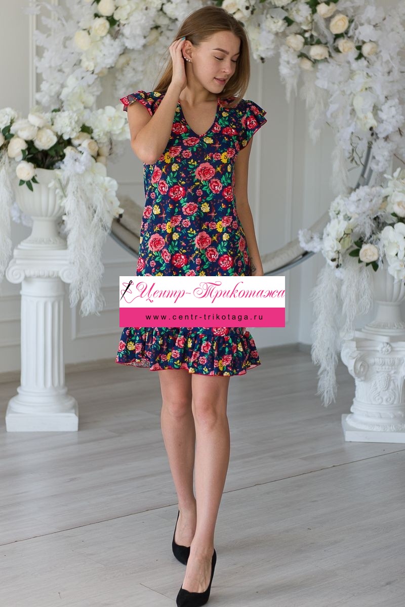 Платье женское из кулирки Элиза красно-желтые цветы №А-03507