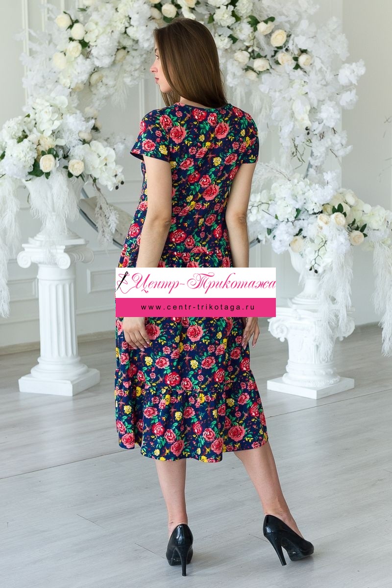 Платье женское из кулирки Кармелита красно-желтые цветы №А-03494