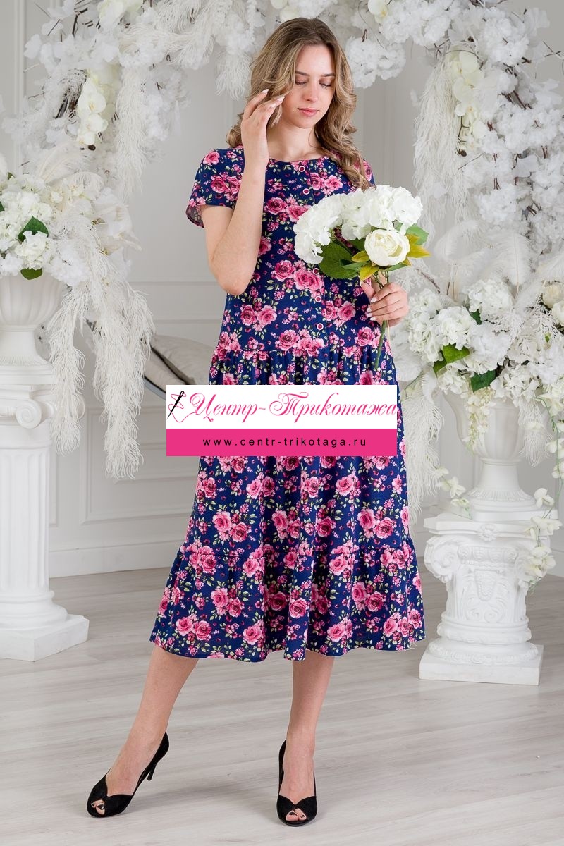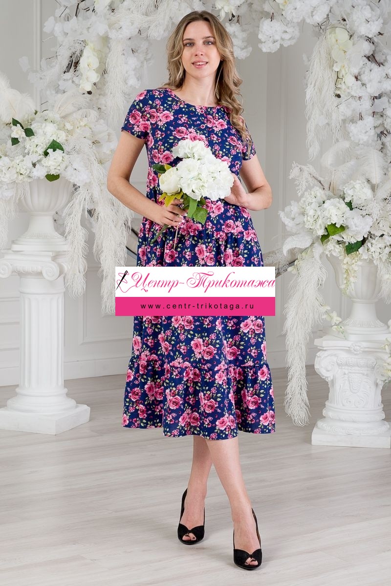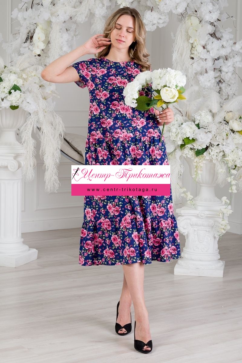 Платье женское из кулирки Кармелита малиновые розы №А-03677