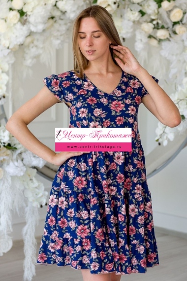 Платье женское из кулирки Люси бежевые цветы №А-03517