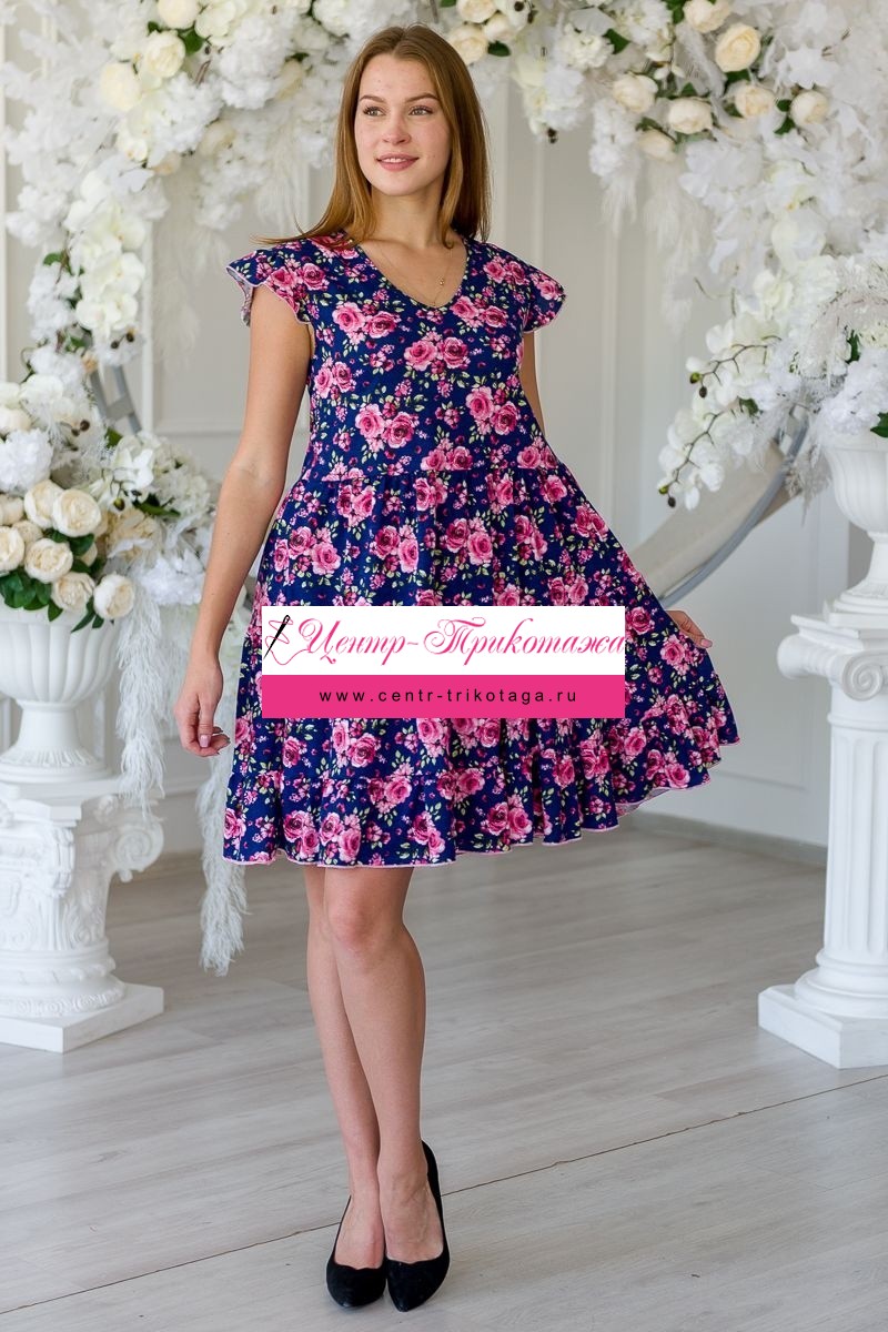 Платье женское из кулирки Люси малиновые розы №А-03530