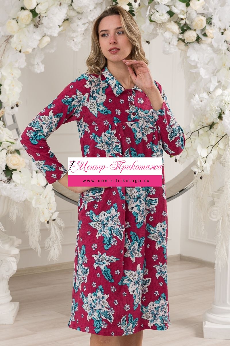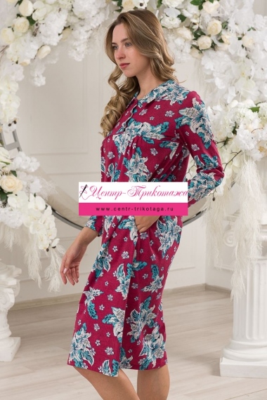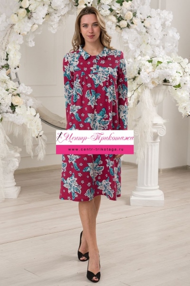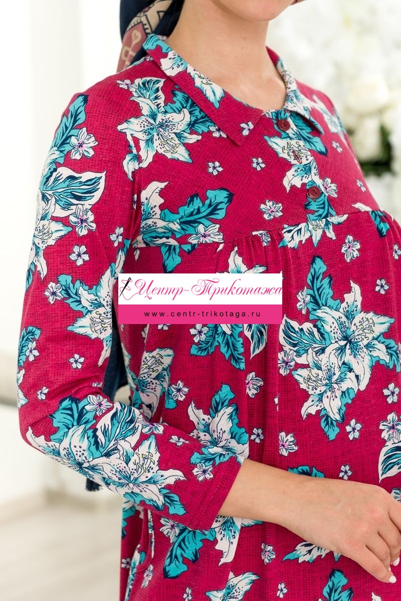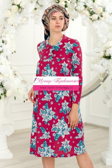 Платье женское из кулирки Самира цветы на бордо №А-03626