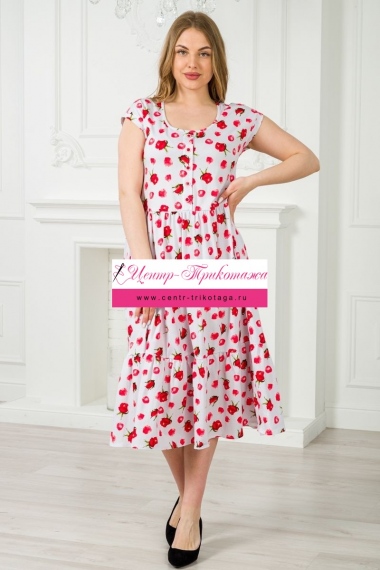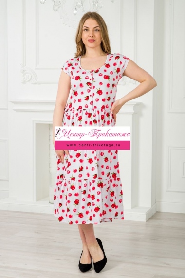 Платье женское из кулирки Шарлотта розы на белом №А-03715