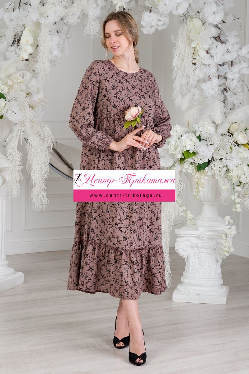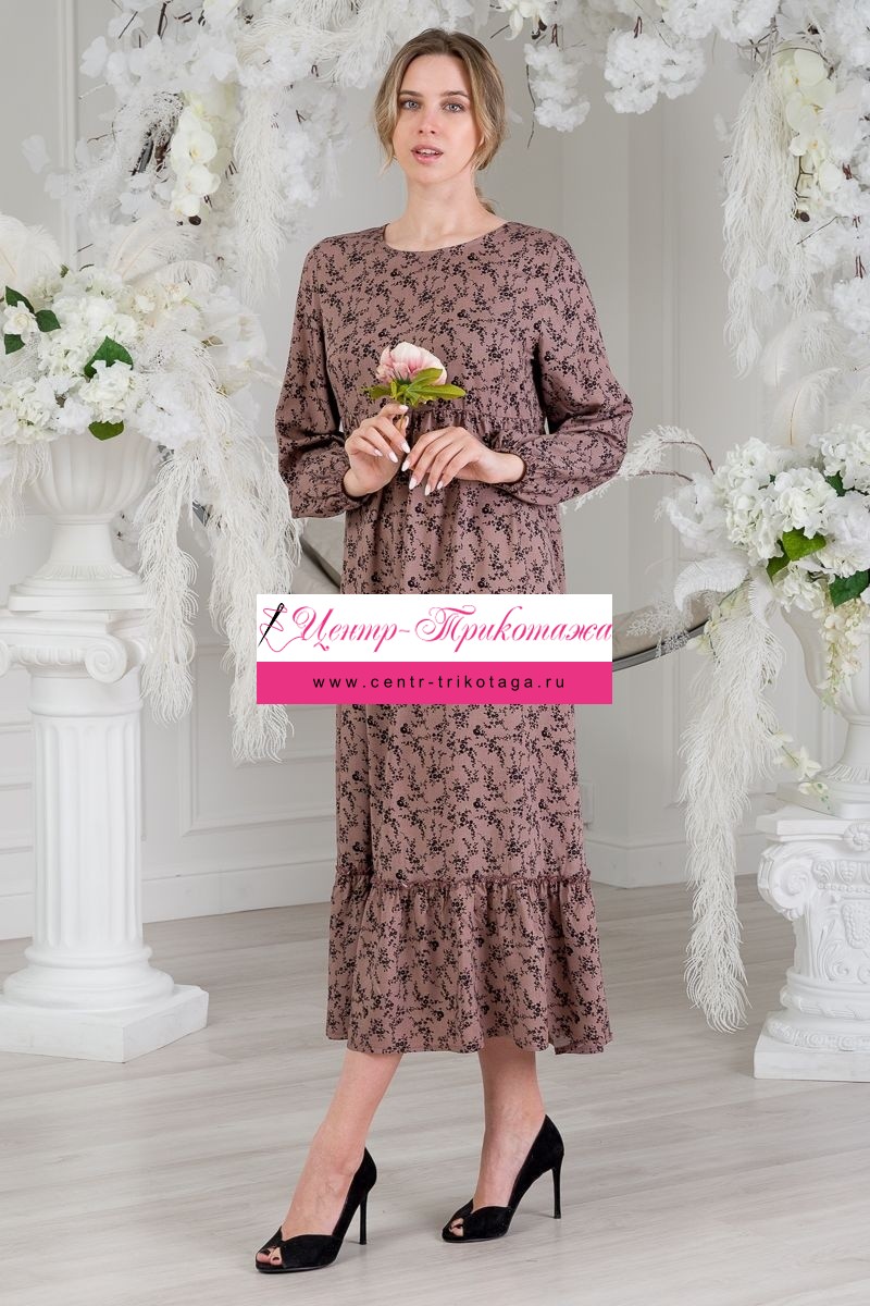 Платье женское из штапеля Розалия веточка на кофе длинный рукав №А-03671