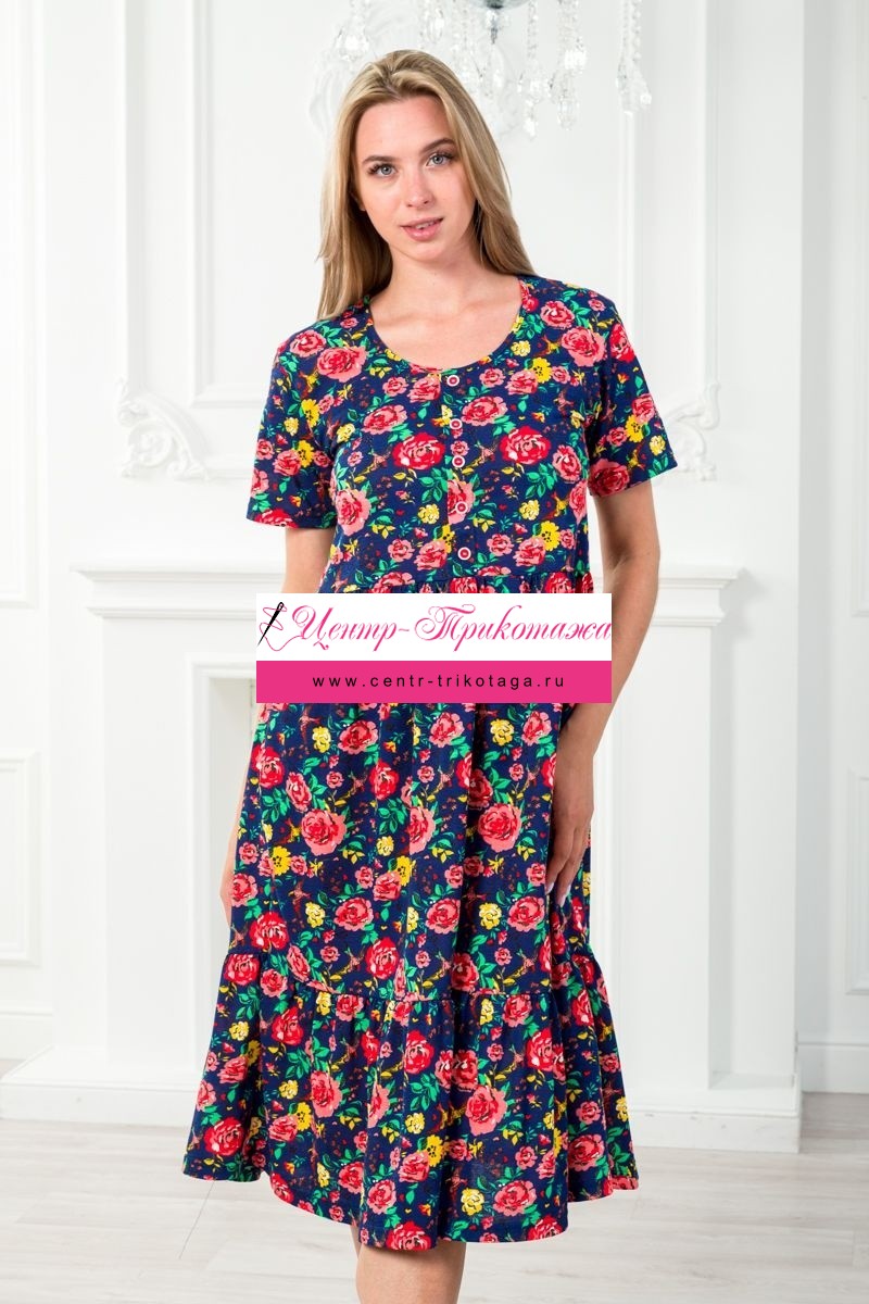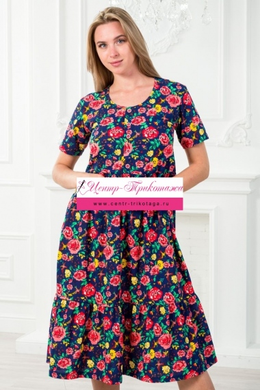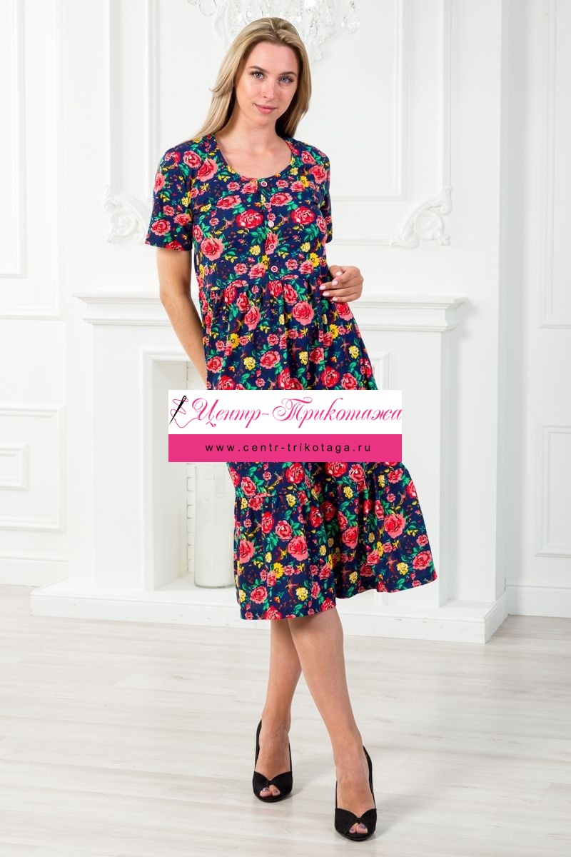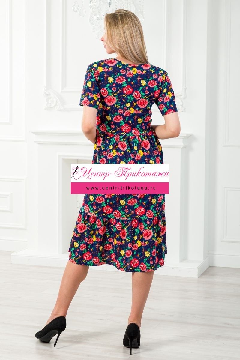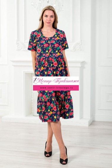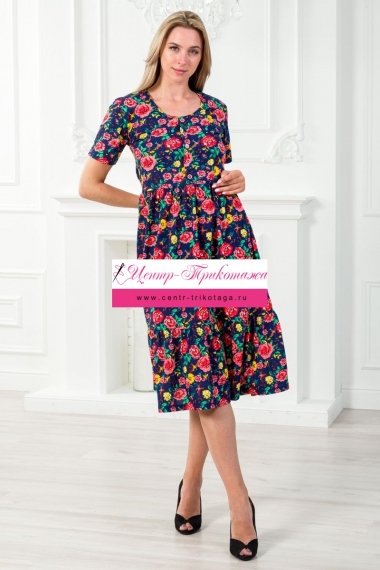 Платье женское с рукавами из кулирки Шейла красно-жёлтые цветы №А-03744