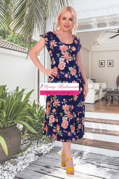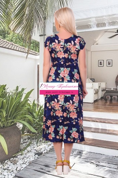 Женское платье из вискозы расклешенного силуэта. Рукава, горловина, подол обработаны на плоскошовной машине