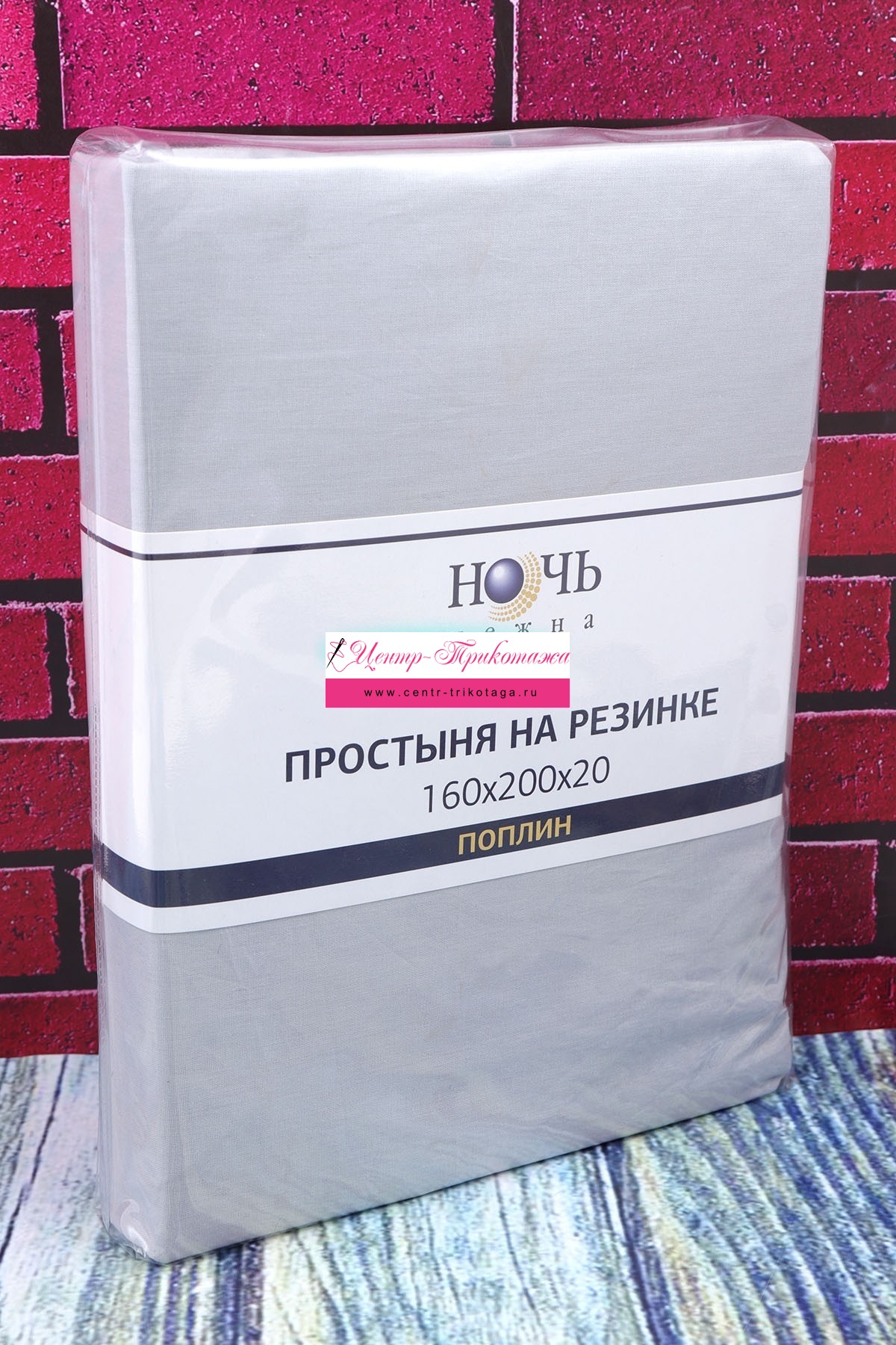 Простынь на резинке Поплин гл/кр "Серый" №ПНН-606