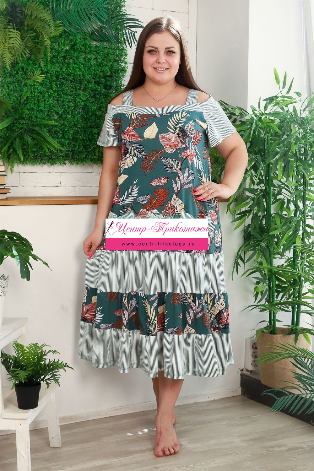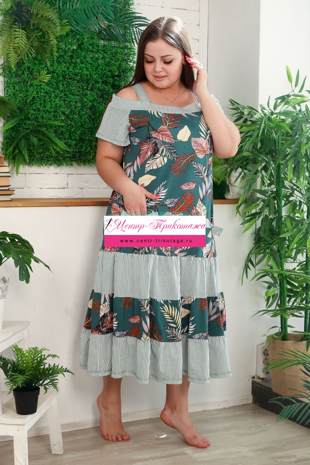 Сарафан женский, к низу расширенный. Низ платья из трех ярусов на небольшой сборке. На полочке два накладных кармана с завязками. Обтачка верха, бретели, короткие рукава, обтачки карманов и два яруса сарафана из ткани в тонкую полоску, что придает изделию особую неповторимость и актуальность. На модели 52 размер