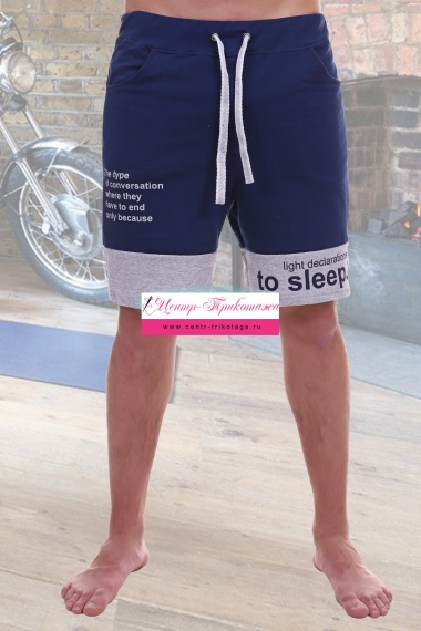 Мужские шорты из футера с лайкрой. По бокам карманы, пояс на резинке со шнурком, принты в виде надписей, вставки другого цвета, длина чуть выше коленей. Две расцветки — серая и синяя. Размеры от 44 до 62. Есть розница.